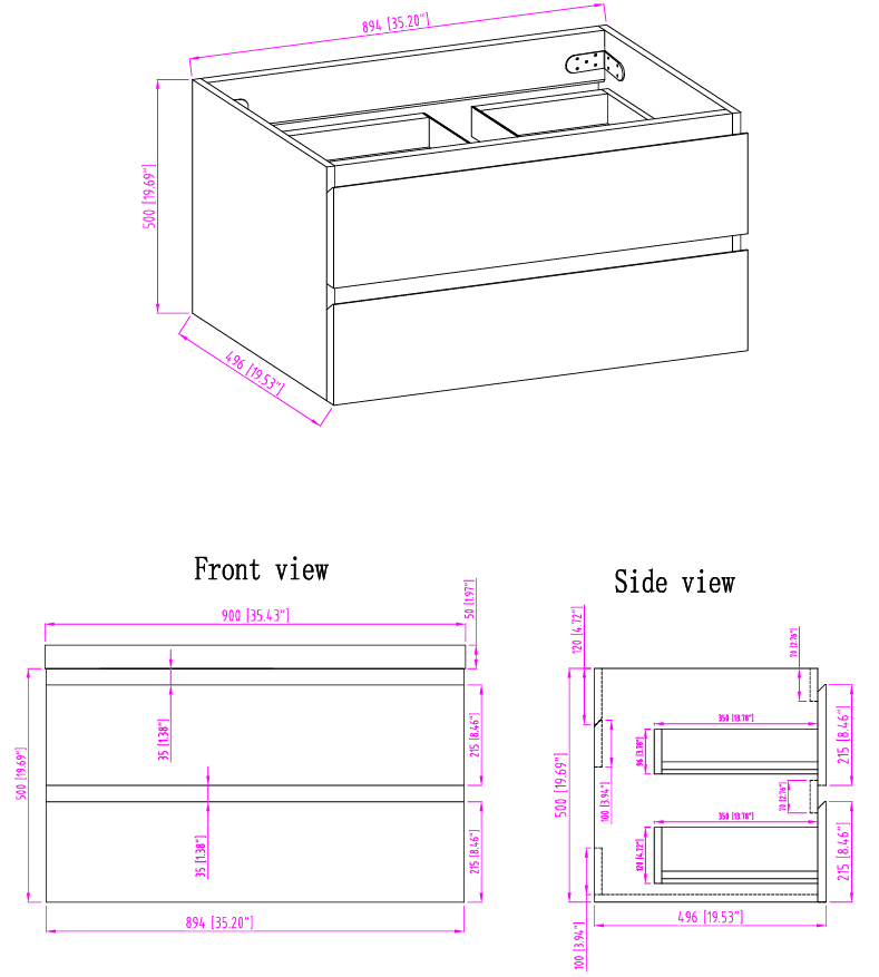 - Width 35.50'' x Height 24.50'' x Depth 19.75''