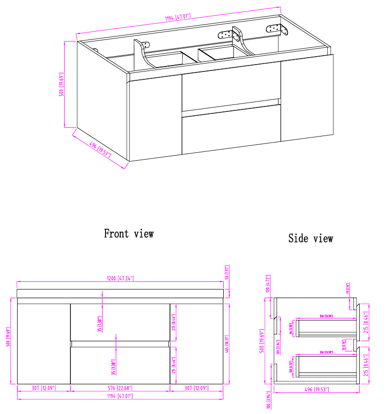 - Width 47.20'' x Height 24.50'' x Depth 19.75''