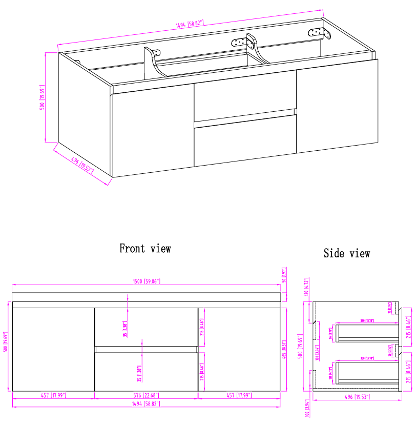 - Width 59.00'' x Height 24.50'' x Depth 19.75''