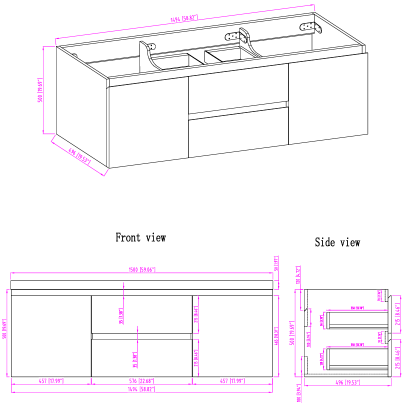 - Width 59.00'' x Height 24.50'' x Depth 19.75''