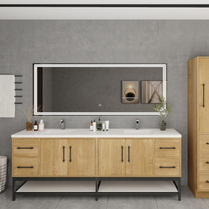 Victoria 84" Plywood Wall-Mount Vanity with Acrylic DOUBLE Sink & Black Rack
