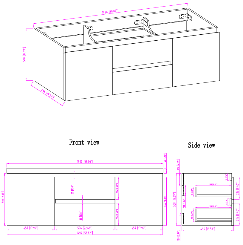 - Width 59.00'' x Height 24.50'' x Depth 19.75''