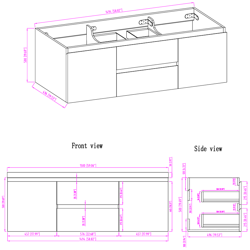 - Width 59.00'' x Height 24.50'' x Depth 19.75''