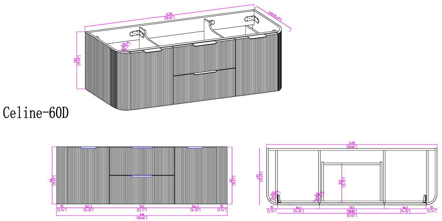 Transform your daily routine into a tranquil experience with the Celine 60" Floating Vanity today.