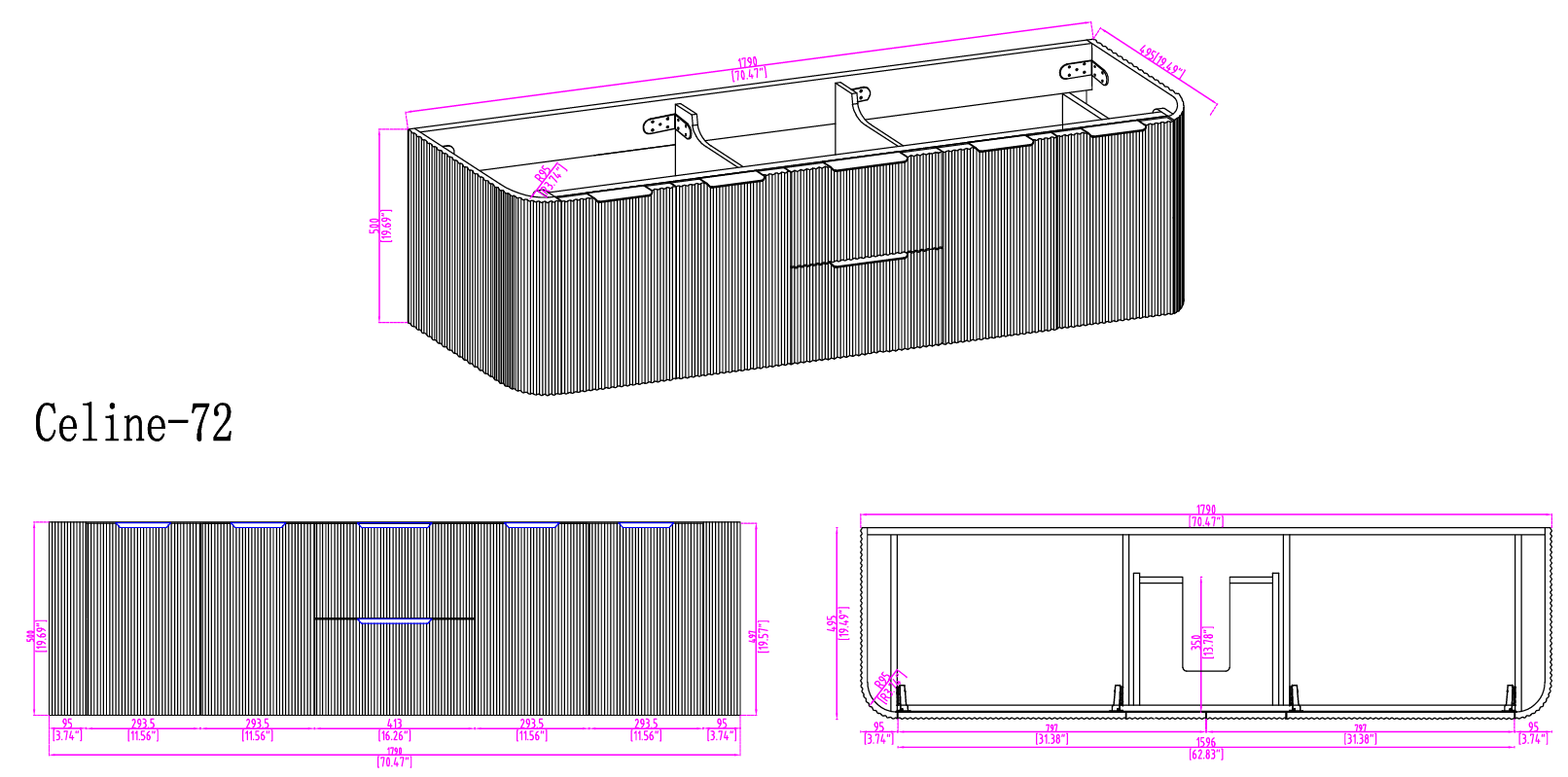 Introducing the Celine 72" Wallmounted Bathroom Vanity – an exquisite blend of fluted rounded natural texture and modern minimalism. Designed to create a serene and sophisticated atmosphere, the Celine features a captivating vertically fluted cabinet available in a rich Chestnut Brown, White Oak & Black finish. This wall-mounted vanity not only serves as a stunning focal point but also enhances the sense of space in your bathroom, making it the perfect centerpiece for powder rooms and compact bathrooms alike.