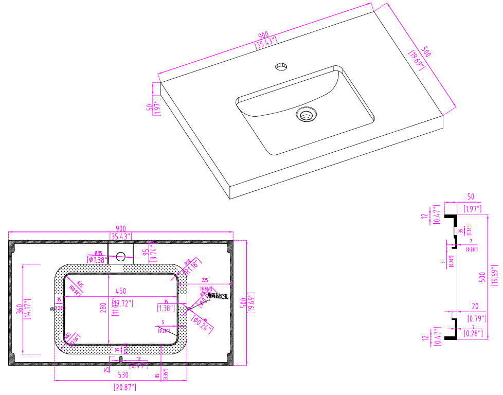 - Reinforced Acrylic Sink: The sleek and modern sink is made from durable reinforced acrylic, ensuring resistance to scratches, stains, and everyday wear and tear.