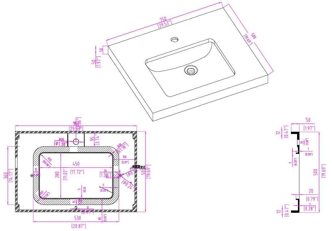 - Matching reinforced acrylic sink top