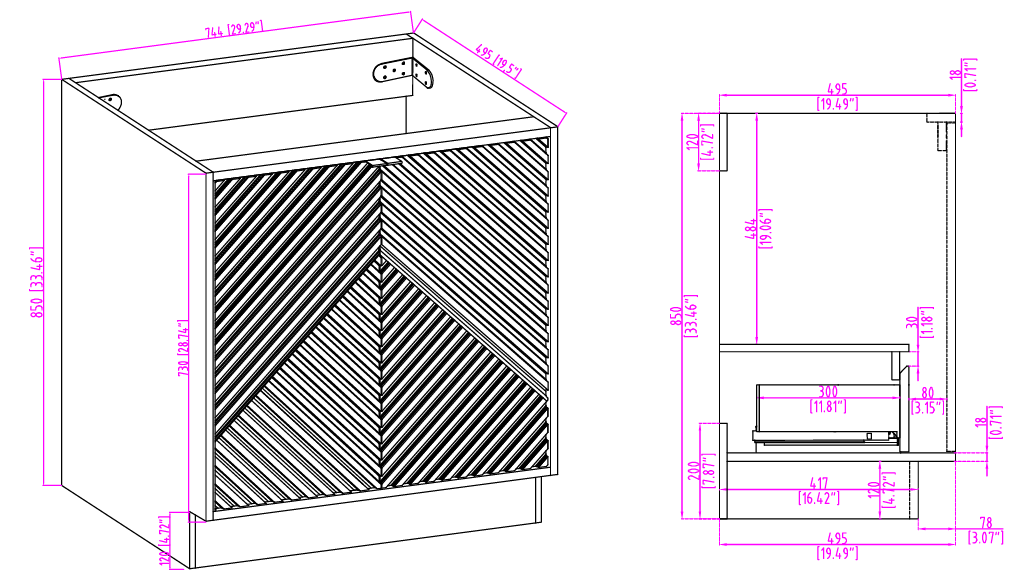 - One 30" Vanity cabinet base