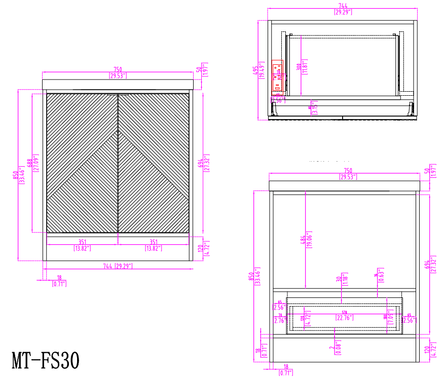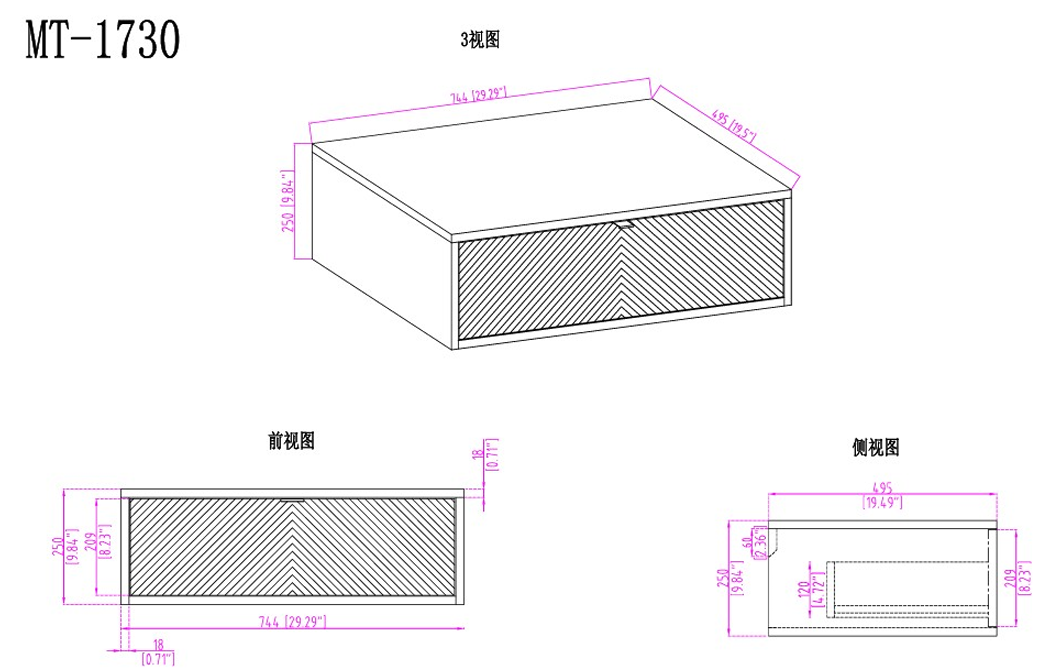 - One 30" Wall-mounted drawer