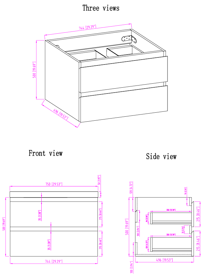 - Width 29.50'' x Height 22.50'' x Depth 19.75''