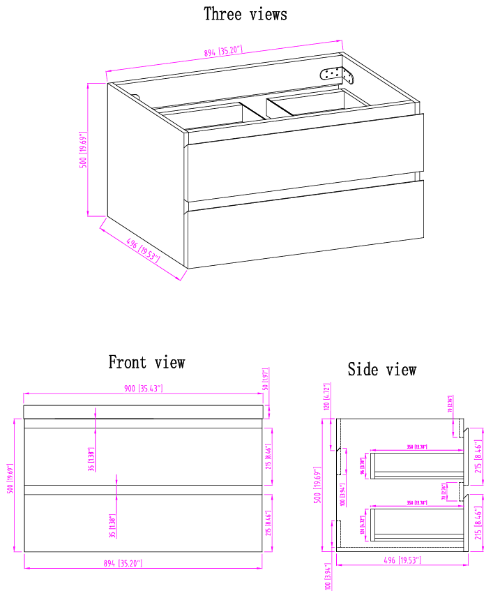 - Width 35.50'' x Height 22.50'' x Depth 19.75''