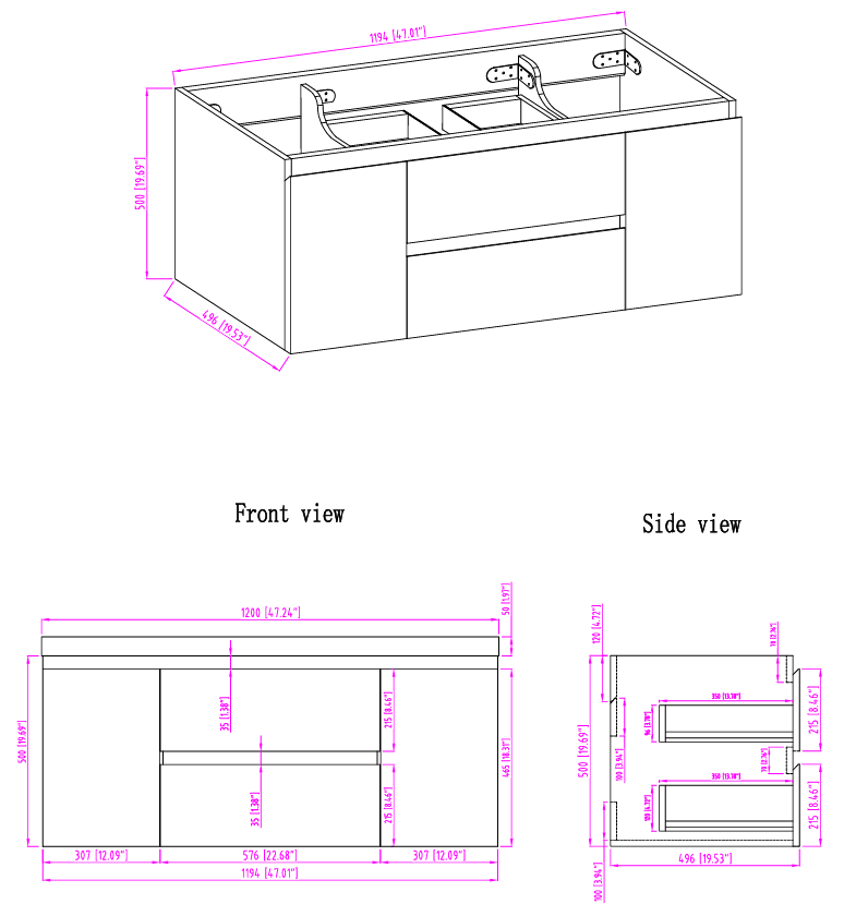 - Width 47.20'' x Height 22.50'' x Depth 19.75''