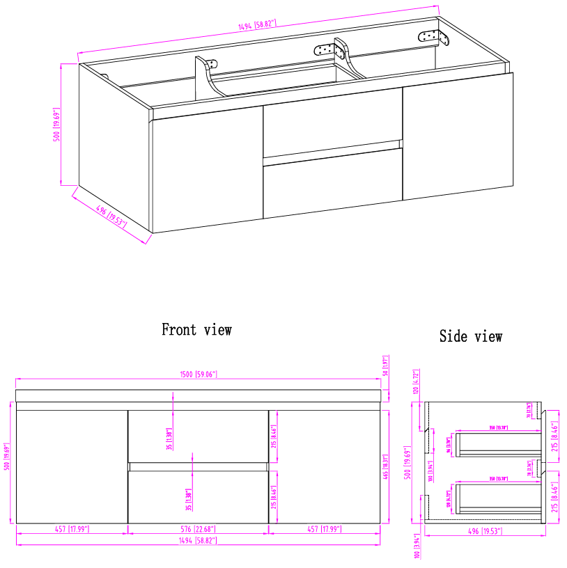 - Width 59.00'' x Height 22.50'' x Depth 19.75''