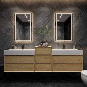 MAX 80" Wall Mounted Bathroom Vanity with Reinforced Acrylic Double Sink (60D" + 20")