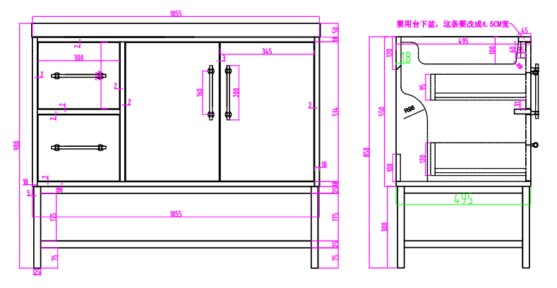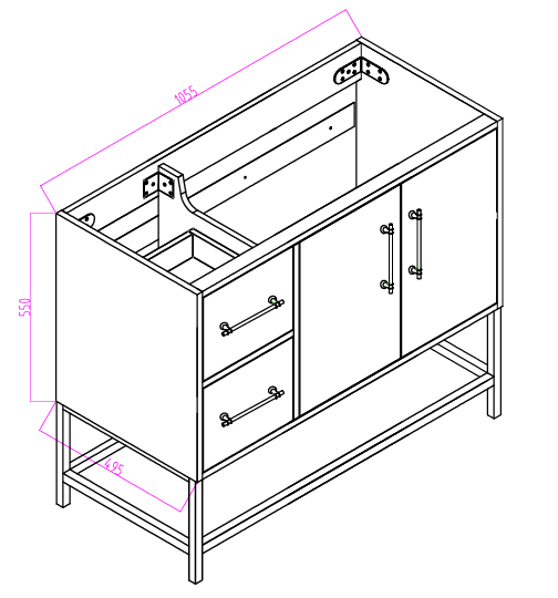 Victoria 42" Plywood Wall-Mount Vanity with Acrylic Sink & Black Rack (RIGHT DRAWER)