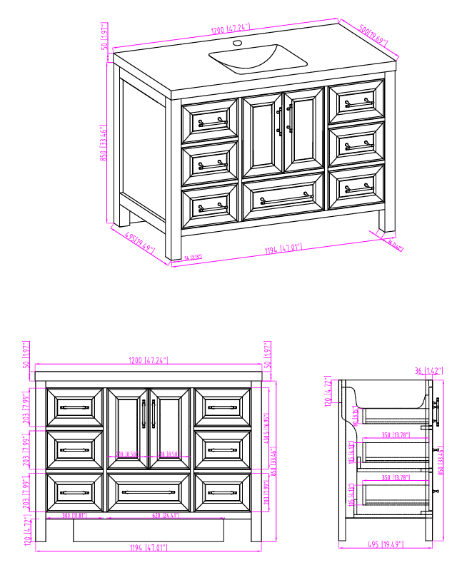 - 48" Inch Solid Wood Freestanding Vanity Cabinet Base