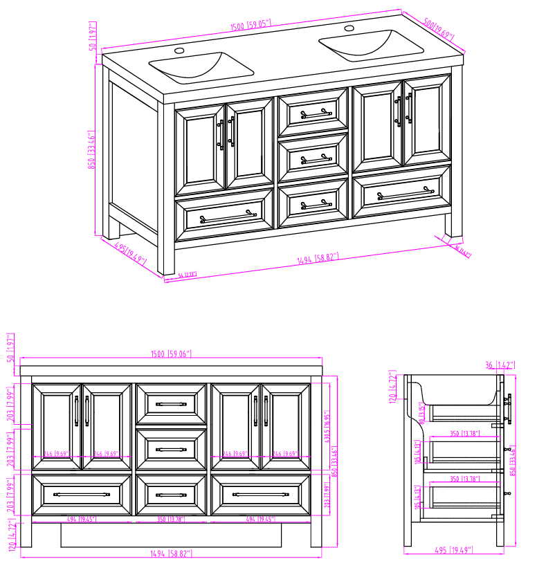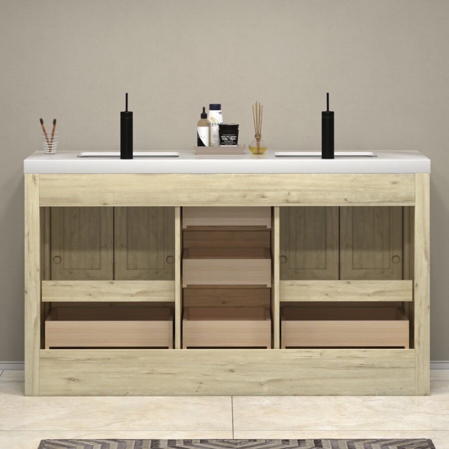- 60" Inch Solid Wood Freestanding Vanity Cabinet Base