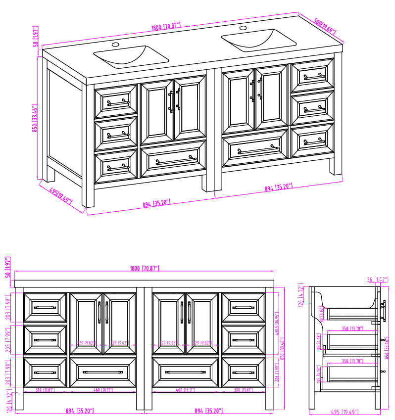 - 72" Bathroom Vanity with Double Sink